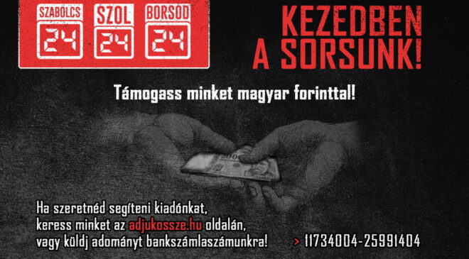 Egy tucat támogató nyitotta meg pénztárcáját és bankszámláját az Esélyegyenlőség és Fenntarthatóság Egyesület őszi adománygyűjtésének nyitónapjain az Adjukössze felületén. A befolyt összeget köszönjük, de nagyon várjuk a további átutalásokat is, hiszen különösen nehéz helyzetben várja az év végét a régió egyetlen független hírportálja, amely a a Borsod24/Szol24/Szabolcs24 című lapokat üzemelteti a régióban. Pár napja indult el lapunk és a környező megyékben működő testvérkiadványaink adománygyűjtó kampánya, melyet a Kezedben a sorsunk! szlogen alatt futtatunk. Bízunk benne, hogy a korábbi esztendőkben sikeresen megvalósított bankkártyás támogatási rendszerrel 2025-ben is sikerül újabb összegeket szereznünk … Bővebben: Az első néhány nap 125 500 forint adományt hozott, bízunk a támogatóink további nagylelkűségében