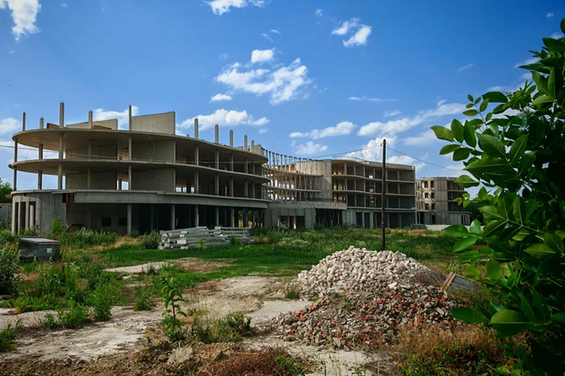 A kivitelezés ugyan elindult, de hamar nehézségekbe ütközött. A növekvő építőipari árak, az infláció és a támogatások részleges visszavonása miatt a munka leállt. A terület kiürült, a darukat elbontották és a mintegy 25–30%-os készültségi szinten álló épület félbemaradt.