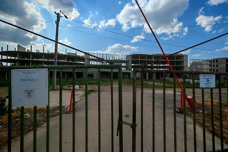 A kivitelezés ugyan elindult, de hamar nehézségekbe ütközött. A növekvő építőipari árak, az infláció és a támogatások részleges visszavonása miatt a munka leállt. A terület kiürült, a darukat elbontották és a mintegy 25–30%-os készültségi szinten álló épület félbemaradt.
