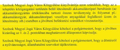 Az eseménynek hivatalos neve is van, “Szolnoki képviselők buzdítása az akkuipart visszautasító indítvány elfogadására”. “Gyertek el holnap 9 órára a Városháza dísztermének karzatára, és biztassuk együtt a képviselőket a javaslat megszavazására!” – írták a szervezők.