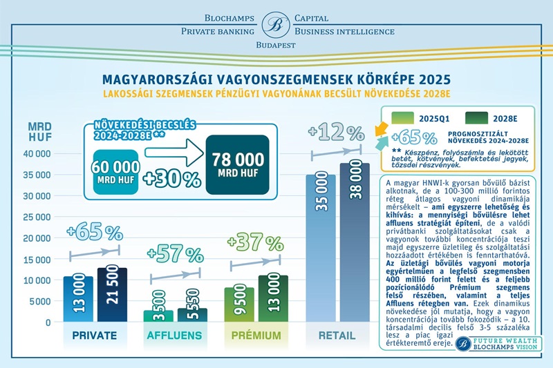 Az előrejelzések szerint a következő években a vagyonkoncentráció tovább nő. A leggazdagabb, privátbanki ügyfelek vagyona 2025 és 2028 között akár 65 százalékkal is bővülhet, míg a tehetősebb középrétegek esetében csak 50 százalékos növekedés várható. A leggazdagabbak közt is egyre szűkebb kör emelkedik ki: míg 2015-ben 120 embernek volt tízmilliárd forintnál nagyobb vagyona, addig 2025-re már 250 fő tartozik ide.