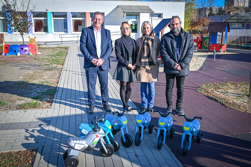 „az országos bölcsődei kismotoros program keretében minden vidéki bölcsődébe eljuttatunk új járműveket a legkisebbek számára”.