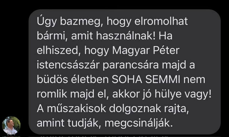 “Ez itt Orbán Viktor egészségügyi államtitkárának az üzenete egy 11 hónapos kisgyermek édesapjának. Az apuka bűne annyi volt, hogy rákérdezett Takács Péternél, hogy miként lehet az, hogy vaksötétben kell a Szent János Kórházban botorkálni a sérült gyerekével és hogy a fűtés nélküli vizsgálóban kell levetkőztetnie a gyermekét, ahol mindenki télikabátban volt.