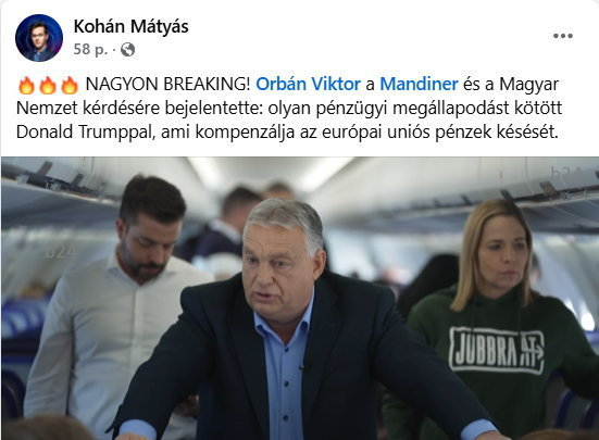 “Ott ültem Donald Trump és Orbán Viktor megbeszélésén, ahol valóban nem született megállapodás semmilyen 20 milliárd dollárról, mint ahogy ezt nem is állította senki. Azt viszont megbeszélték, hogy egyeztetéseket kezdünk egy újfajta pénzügyi együttműködésről, annak lehetséges formáiról, egy olyan mechanizmusról, ami pénzügyi védelmet jelenthet.”