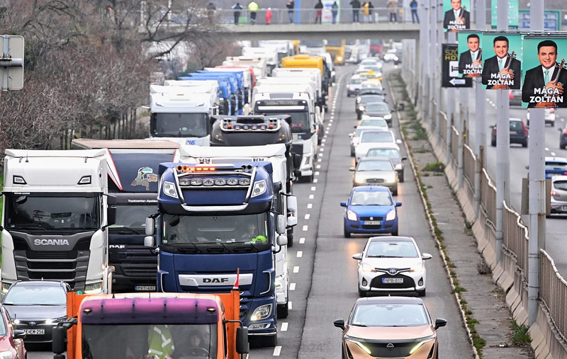 A Borsod24 napközben többször beszámolt az eseményekről, íme néhány kép a tüntetés valódi mértékéről. Ám ezen kamionoknak csak a töredéke juthatott be végül a belvárosba. Kérdés, hogy ebbe ilyen könnyen beletörődnek-e a fuvarozók, hogy merő félelemből kitiltották őket a fővárosból. (Borítókép: Fekete-Győr András)
