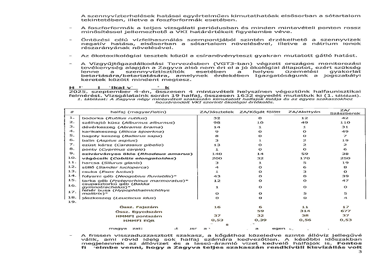 Idézek belőle: “A szennyvízterhelések hatásai egyértelműen kimutathatóak elsősorban a sótartalom tekintetében, illetve a foszforformák esetében.” “… a Zagyva alsó nem éri el a jó ökológiai állapotot, ezért szükség lenne a szennyvíztisztítók esetében a helyes üzemeltetési gyakorlat betartására/betartatására …”.
