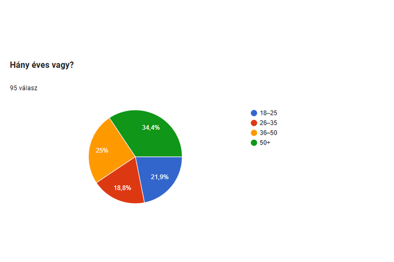 A mintában az életkor vegyes, de jól látszik, hogy több korosztály is erősen jelen van: több mint 30% 50 év feletti, nagyjából a negyedük 36–50 év közötti, több mint 10% 26–35 éves, és több mint 20% 18–25 év közötti.
