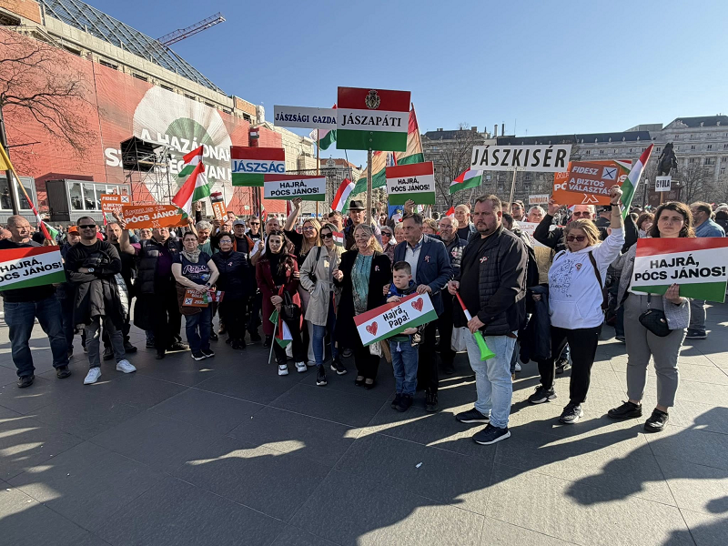 De kezdjük az elejétől. Pócs János már délelőtt többször bejelentkezett a budapesti Békemenetről (egyszer ismételten egy kisfiú kezét fogva szerepel a fotón, aki az általa fogott tábla alapján az unokája lehet), amin ugyan Március 15-ről és az ünnepről kevés szó esett, ahogy a békét is gyorsan felváltotta a szónokok által a gyűlöletkeltés és propaganda. Érdekes téma egy békemeneten, de még egy március 15-én is, de a “Hajrá Pócs János” feliratú zászlók sem maradhattak ki, természetesen. A képviselő úr maga tett közkinccsé képeket a menetről.