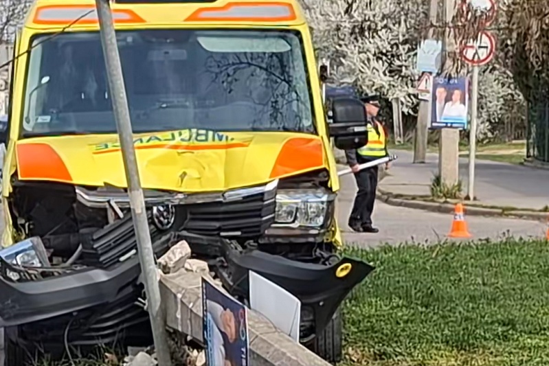 Egy mentőautó és egy személygépkocsi ütközött össze Szolnok belterületén a Széchenyinél.